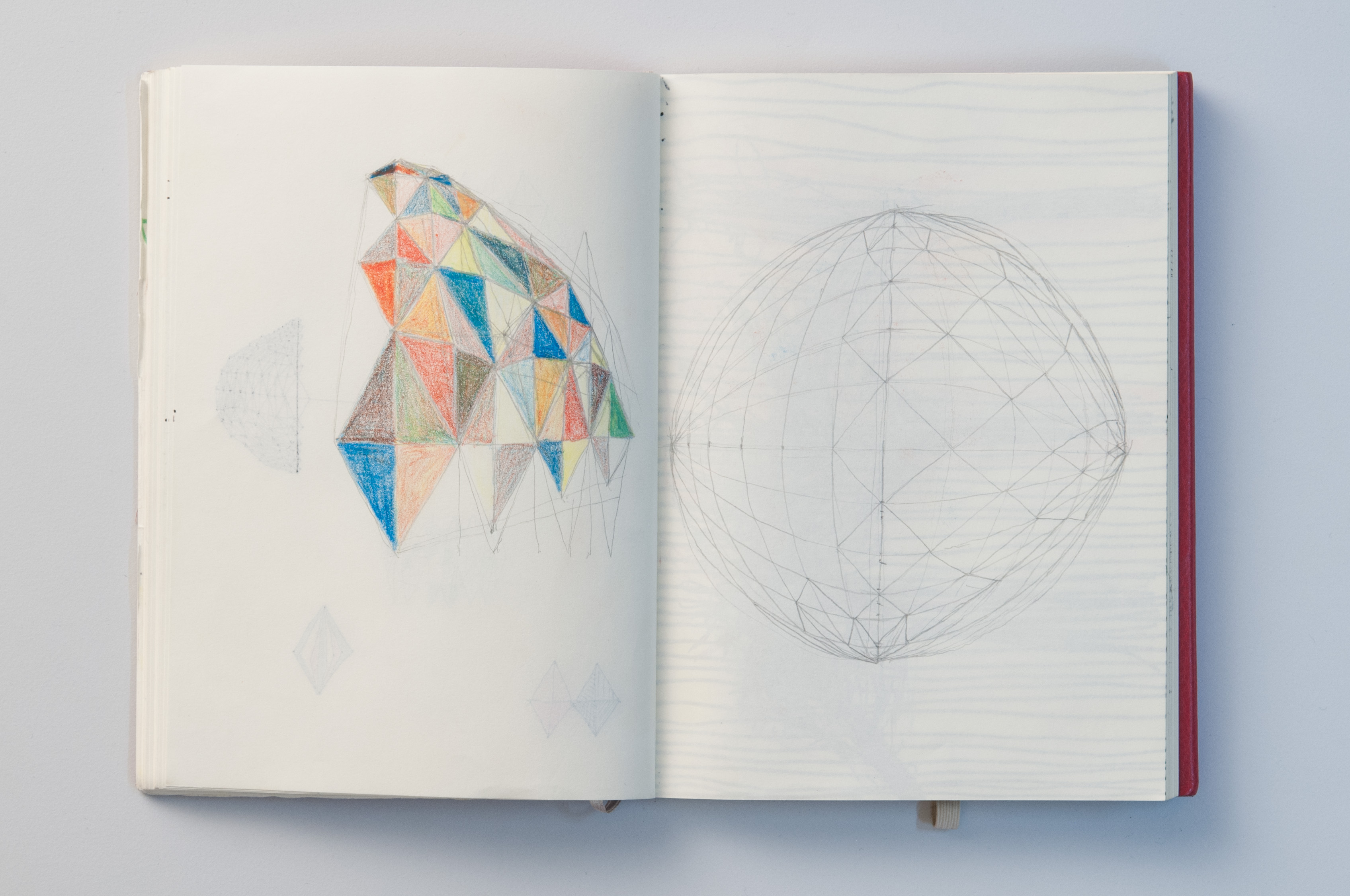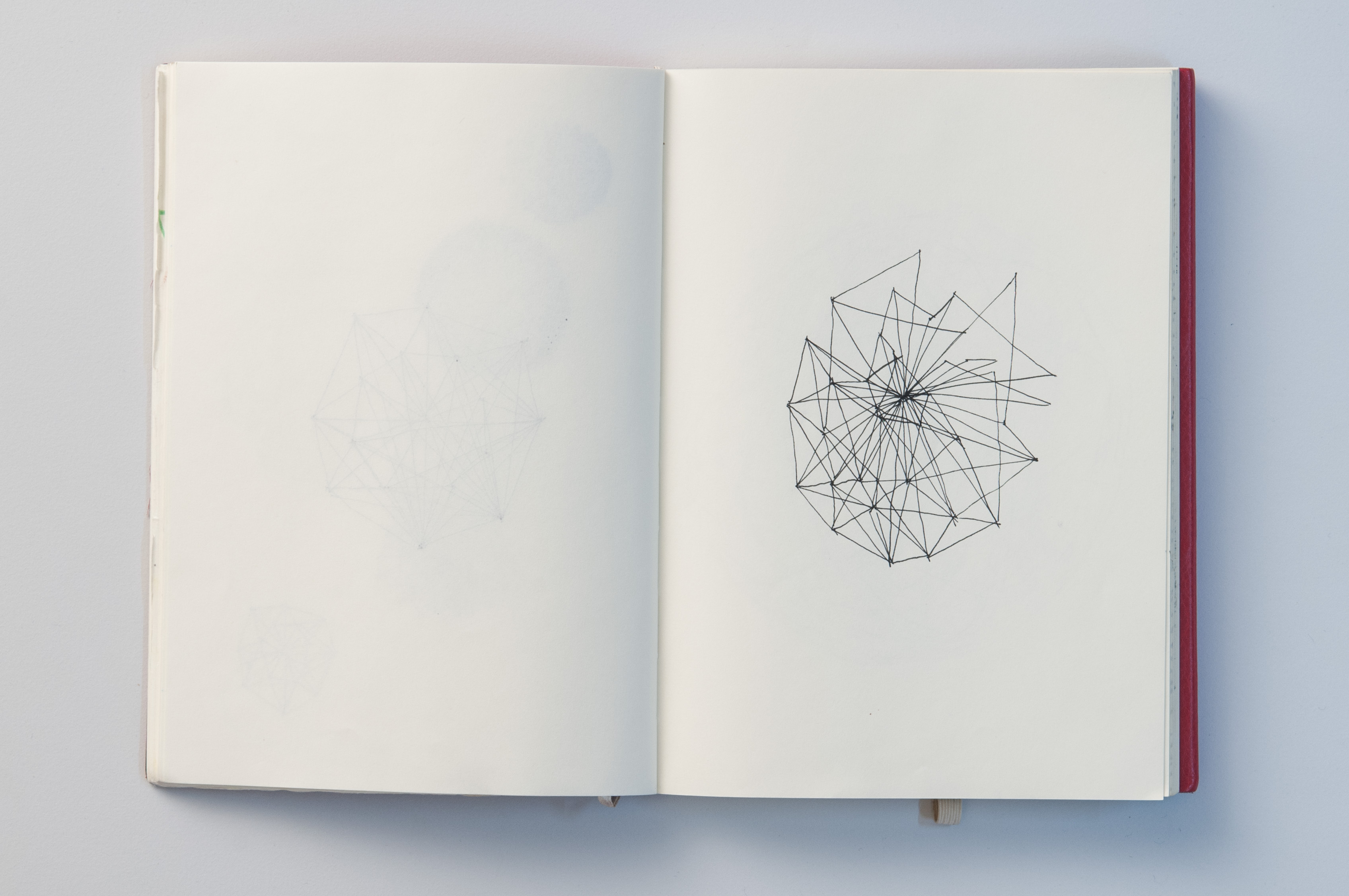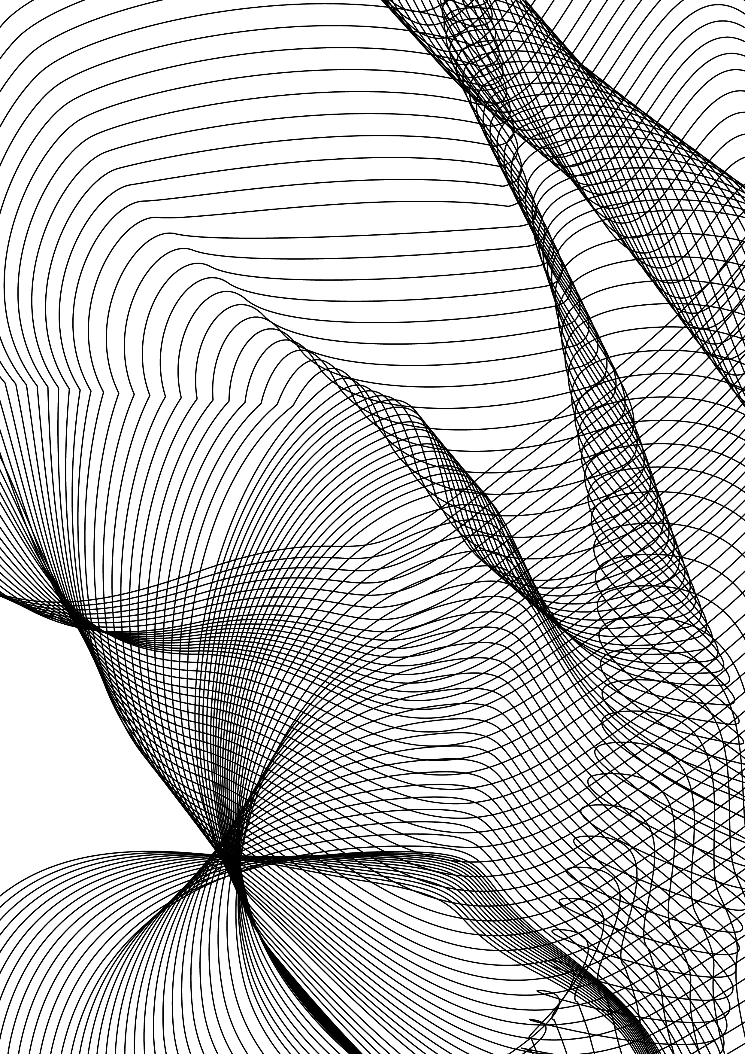 Exploring a spherical object and its surfaces. In a greyzone of organic shapes and geometric construction I explore the effects of overlapping layers. Clear set colors and lines start bending and mophing creating depth and variation.